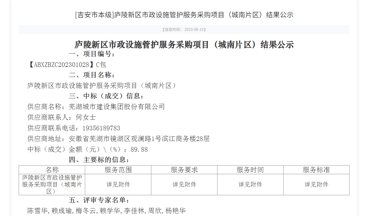 近日,蕪湖城建集團在江西省吉安市廬陵新區(qū)市政設(shè)施管護服務(wù)采購項目(城南片區(qū))的競標(biāo)中脫穎而出,順利中標(biāo)。該項目是集團在省外取得的第一個養(yǎng)護項目,同時也是阿米巴戰(zhàn)略調(diào)整之后的又一里程碑!